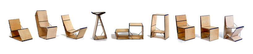 “loop chair”是设计师 boaz mendel的作品,这款座椅是由7块长度不同的板子组成,这些板子再用五金件相互连接形成一个回路。完成后的设计可以自由创作多种不同的家具形式。折叠五金连接件并附加一些特殊的链接装置可以改变这款椅子的形态,根据需求满足不同的需要。每一种折叠位置都有确定的功能,而且它们还有可能在一瞬间...