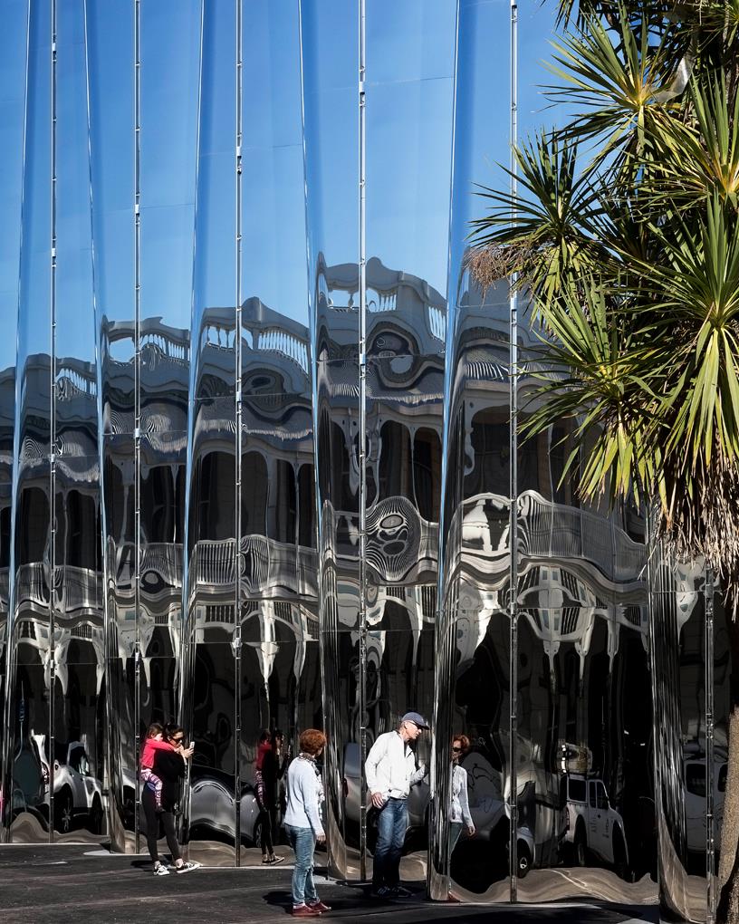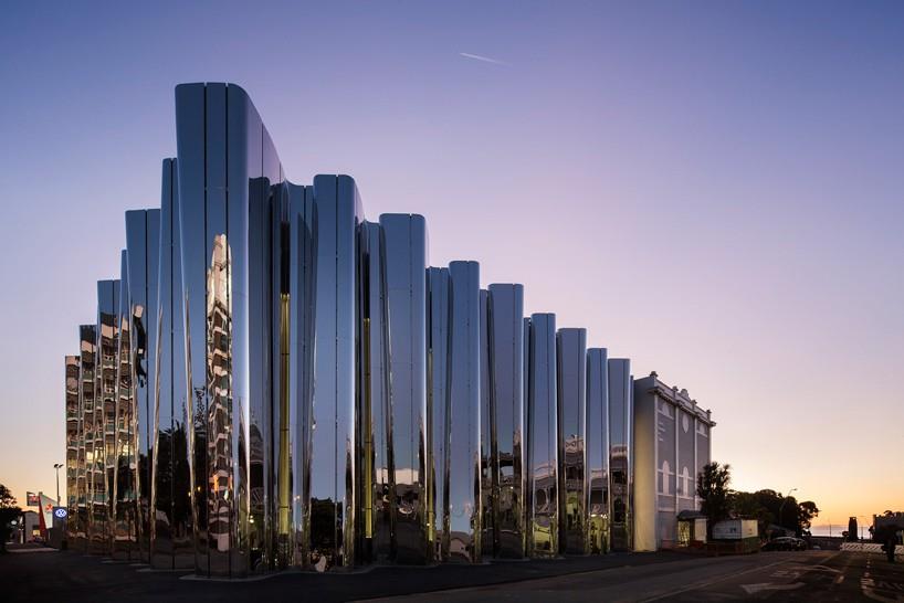不锈钢立面的新西兰len lye艺术博物馆