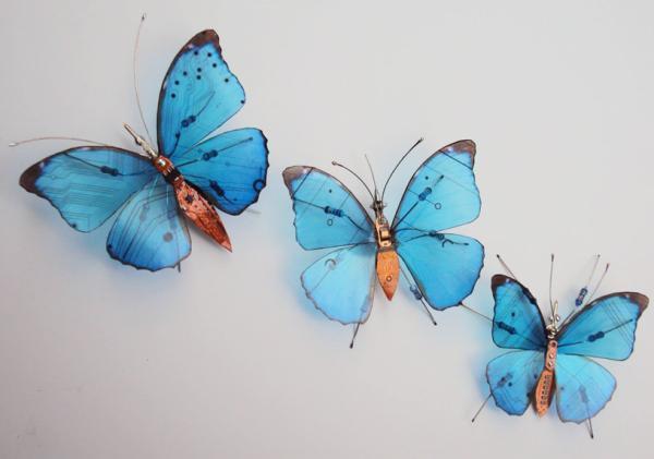 英国朴次茅斯的艺术家Julie Alice Chappell用各种淘汰的电脑、视频游戏系统的元件,制作电子昆虫。